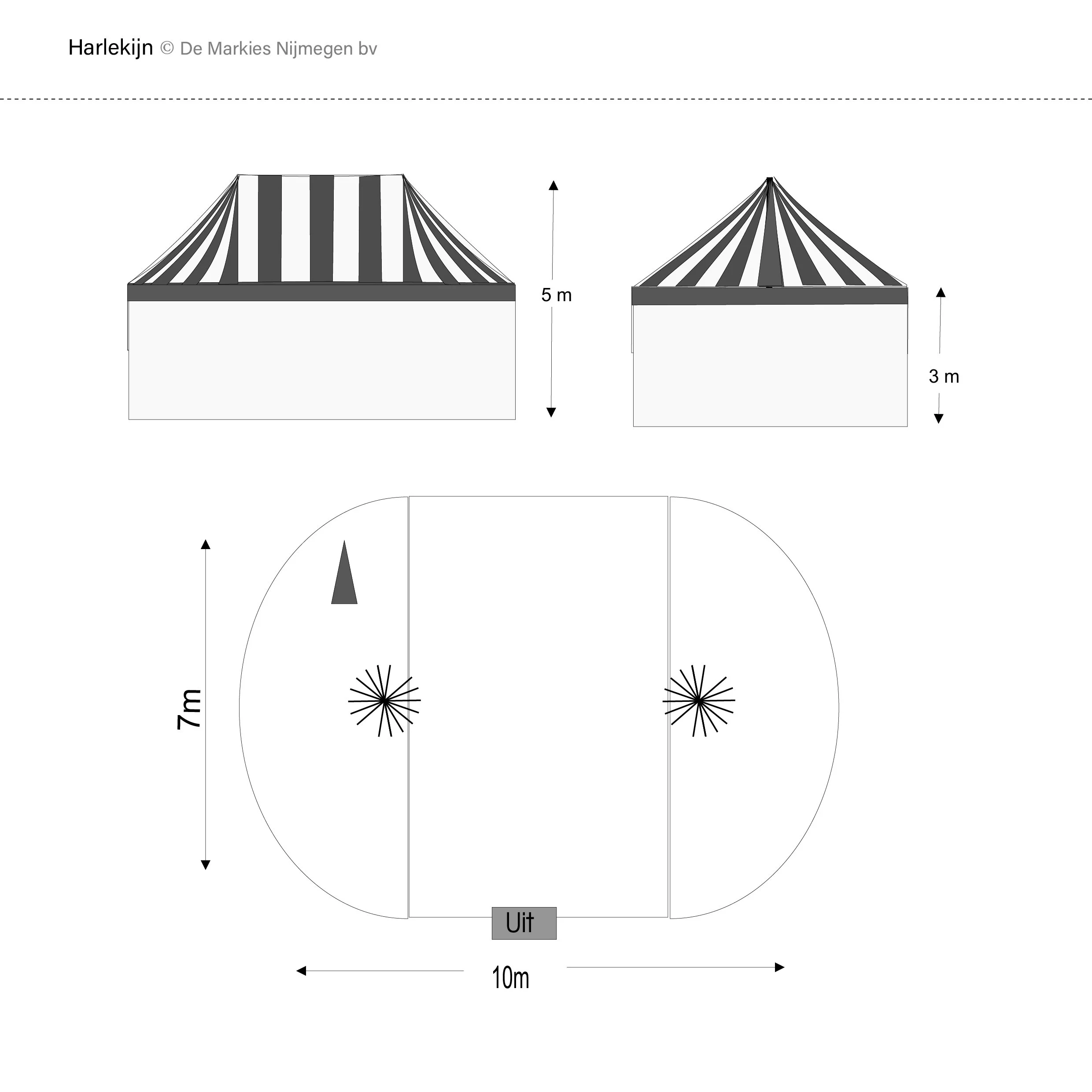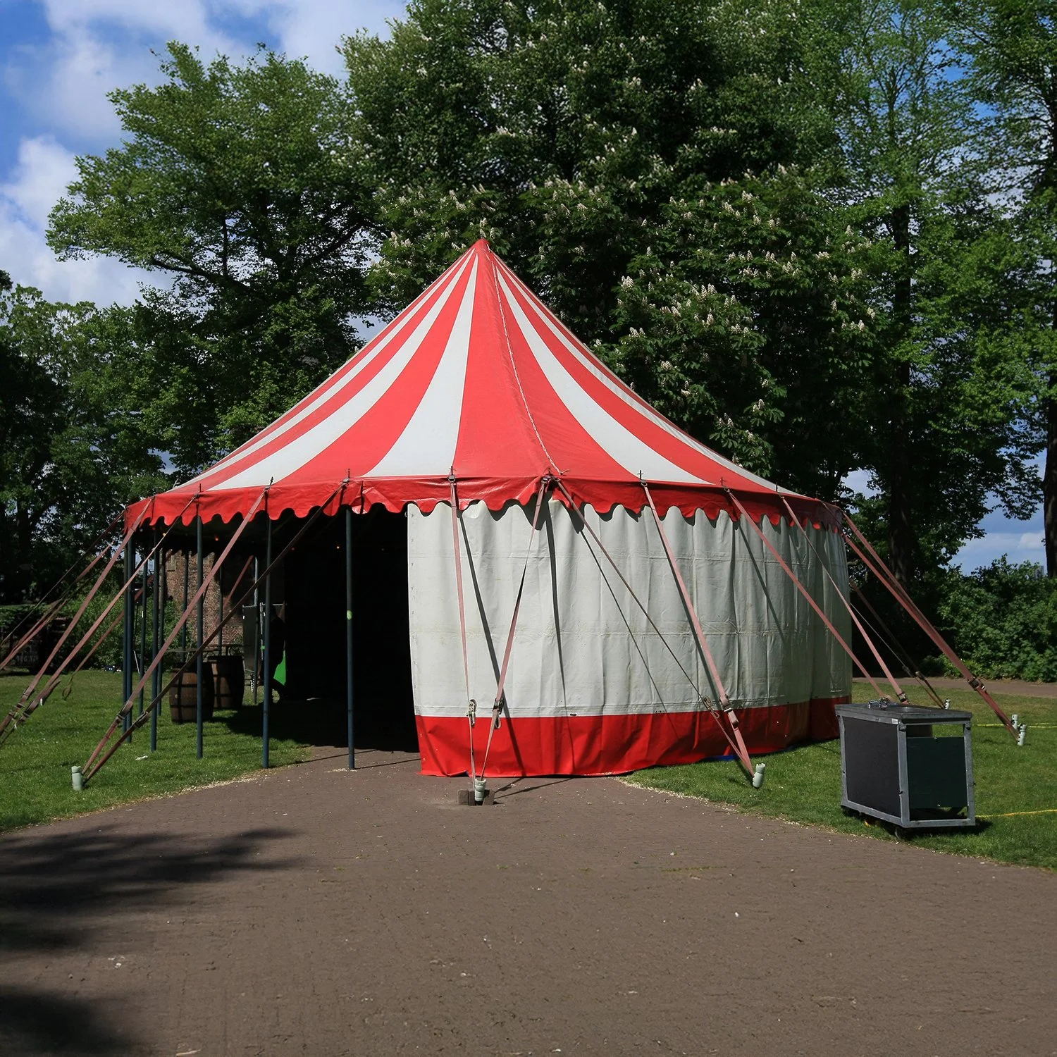 Deze kleine tweemaster is geschikt als backstage tent, als kindertent of als feesttent voor kleinere feesten. Er passen ongeveer 60 mensen in.