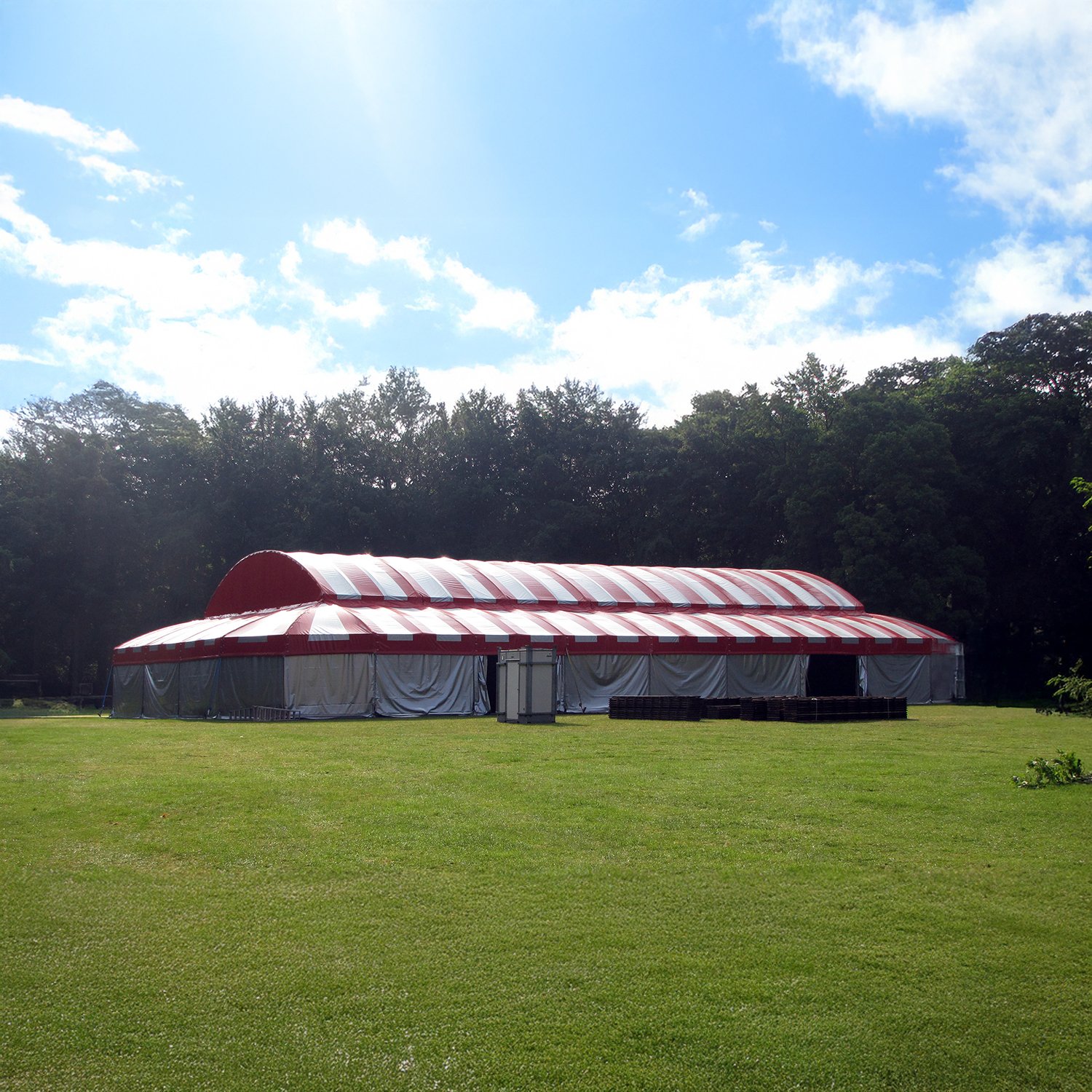 De Kathedraal, een grote tent met vele mogelijkheden, is in zijn standaard opstelling 1125 m2 groot. Het is een opvallende verschijning, opgebouwd uit een middenschip met rondom zijbeuken. De tent is gebouwd naar model van een echte kathedraal, met ornamentele spanten en een origineel glas-in-loodraam.De Kathedraal is in vele variaties op te zetten:1-In zijn geheel: middenschip met aan alle zijden beuken2-De zijbeuken als terrasoverkapping of galerij3-Twee beuken tegen elkaar als tent van 10m breed4-Het middenschip als tent van 15 m breed tot maximaal 60 m lang5-Als podium overkapping van 10, 15 of 25 m breedLet op: het dakdoek van de Kathedraal is lichtdicht zodat de afgesloten tent ook overdag professioneel uitgelicht kan worden. Volledige Kathedraal 25 x 45 m