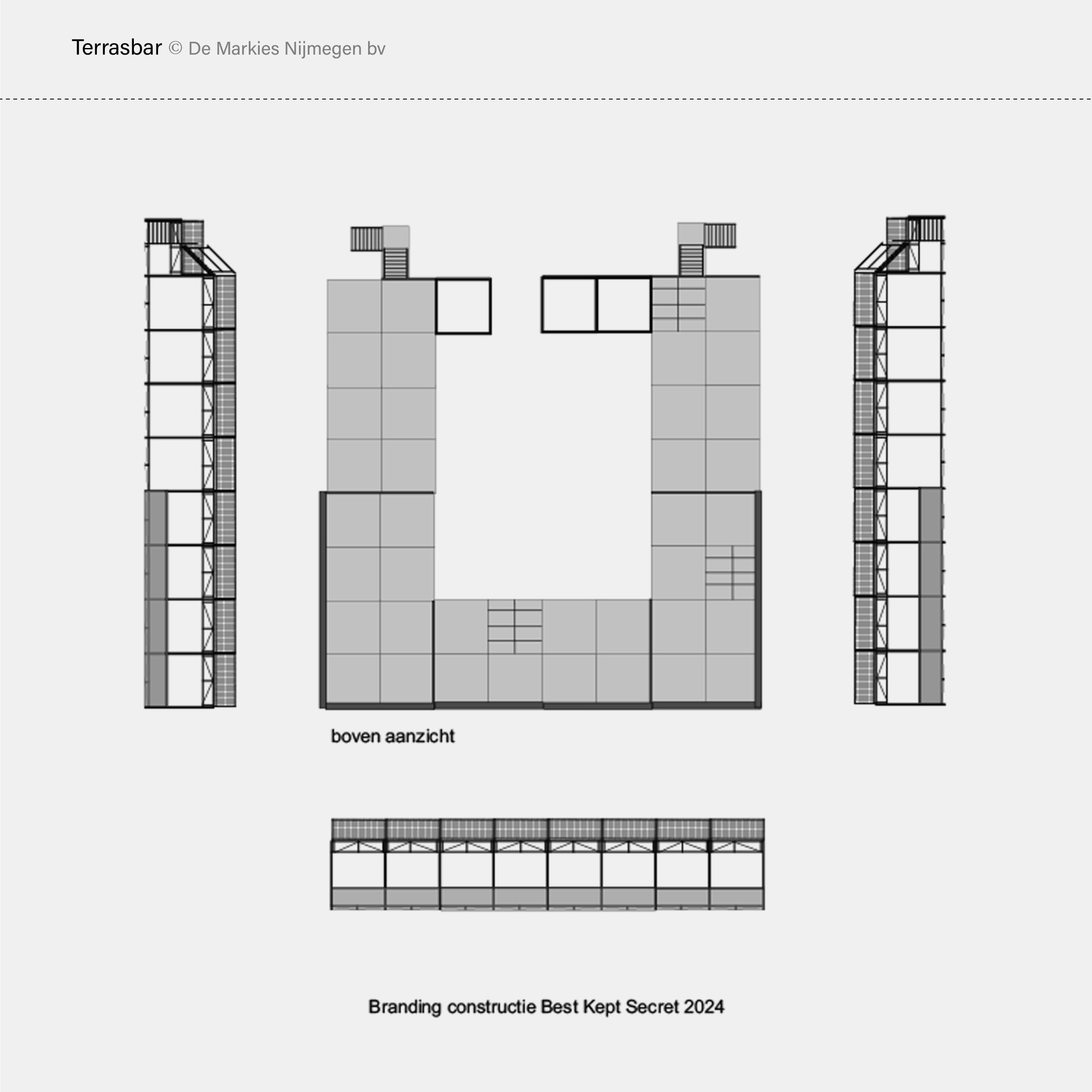 Beschikbaar in diverse formaten op basis van units met de afmetingen 2,5 × 2,5 m. De terrasbar kan gebouwd worden met of zonder bovenetage; zowel met- als zonder overkapping. Leverbaar met houten panelen of zeilen.