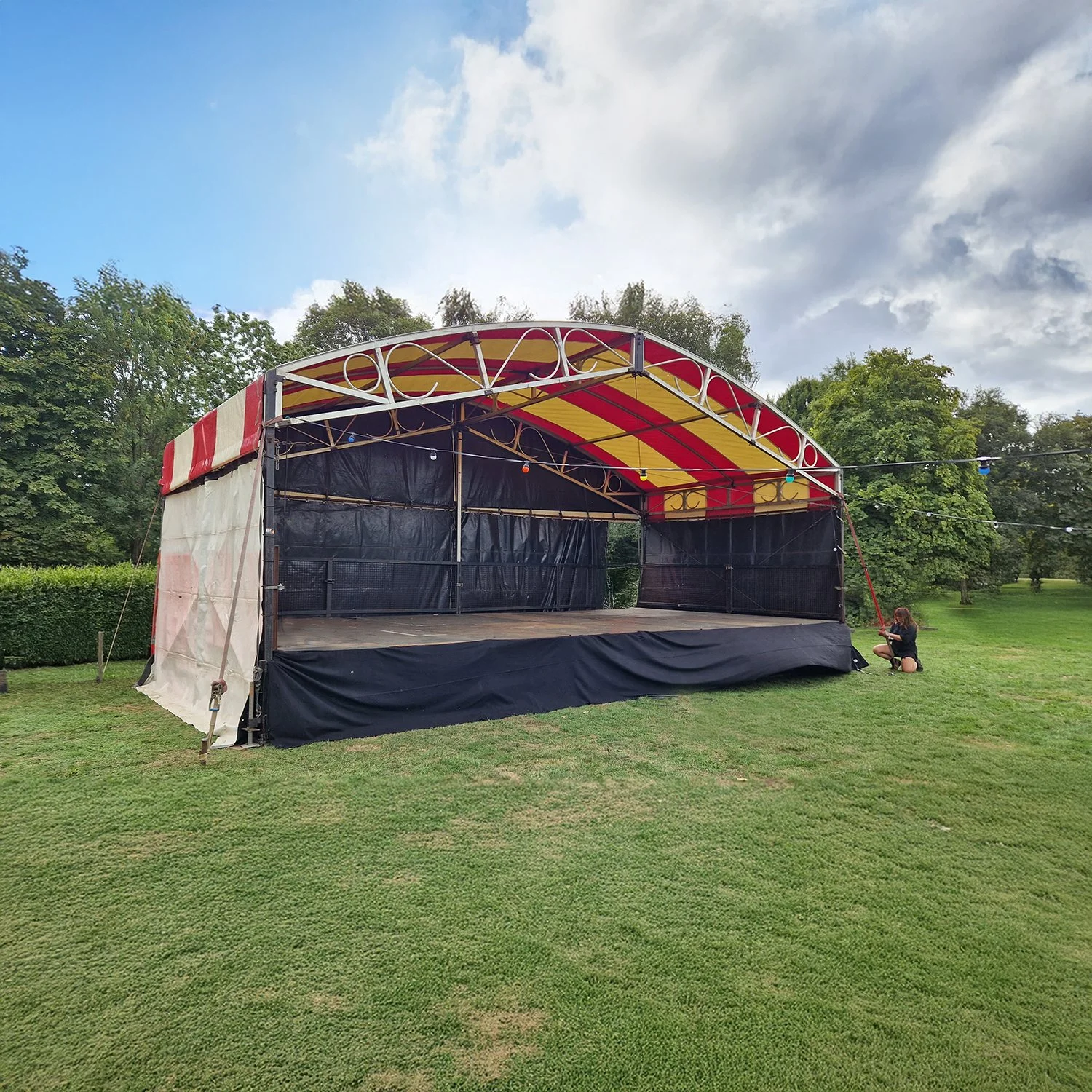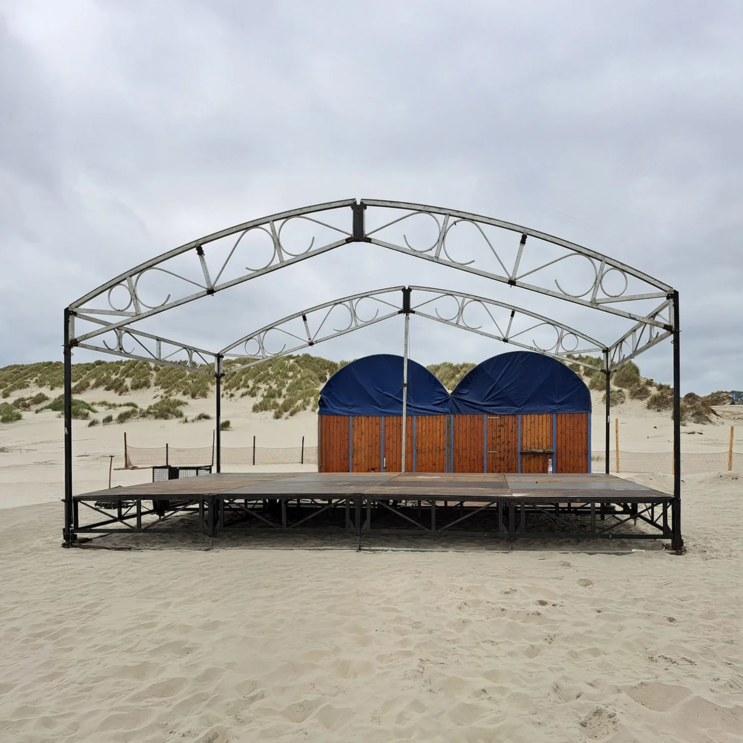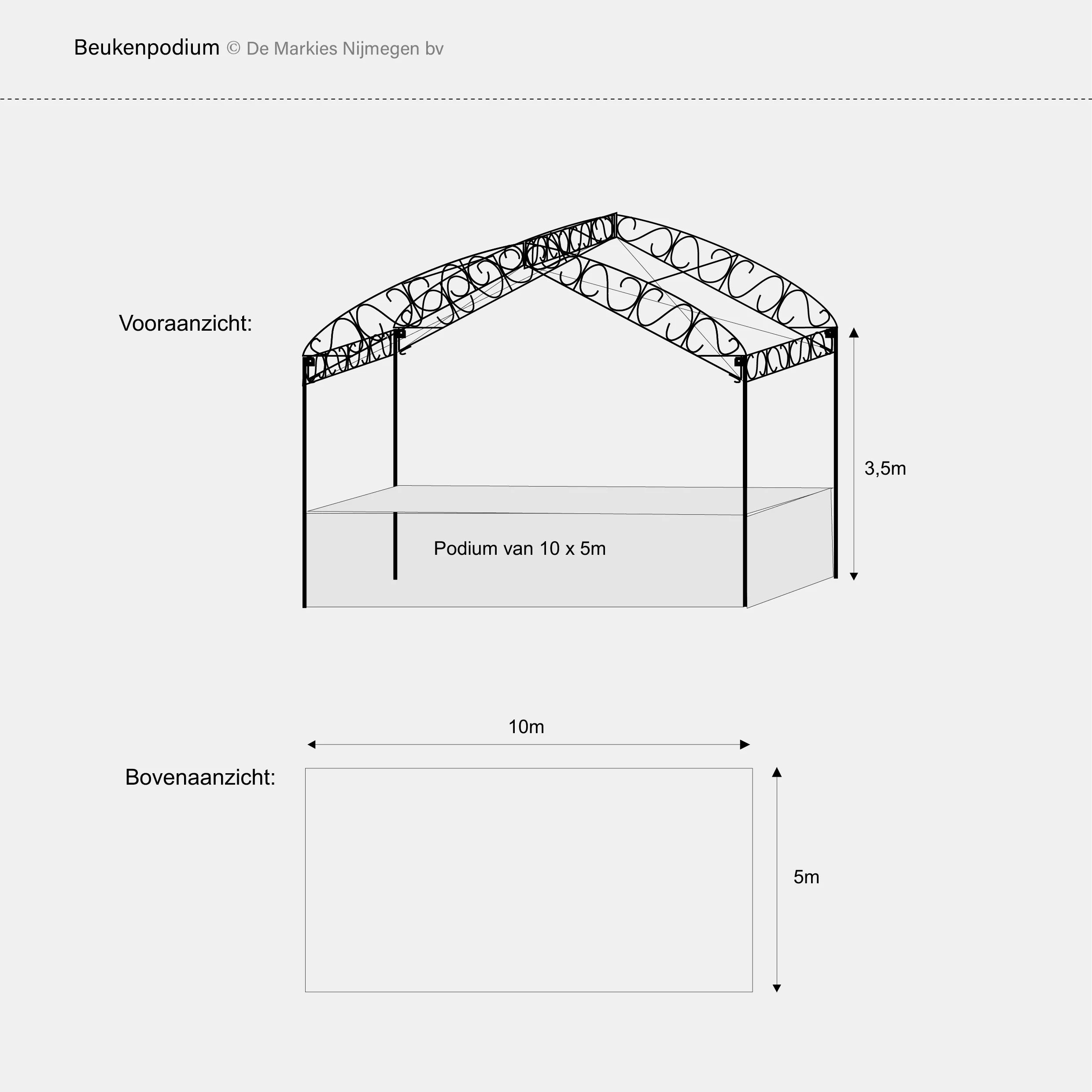 Het Beukenpodium is een gezellig middelgroot podium met standaardafmetingen van 10 m breed en 5 m diep. De diepte kan desgewenst aangepast worden met units van telkens 5 m. breedte 10 m